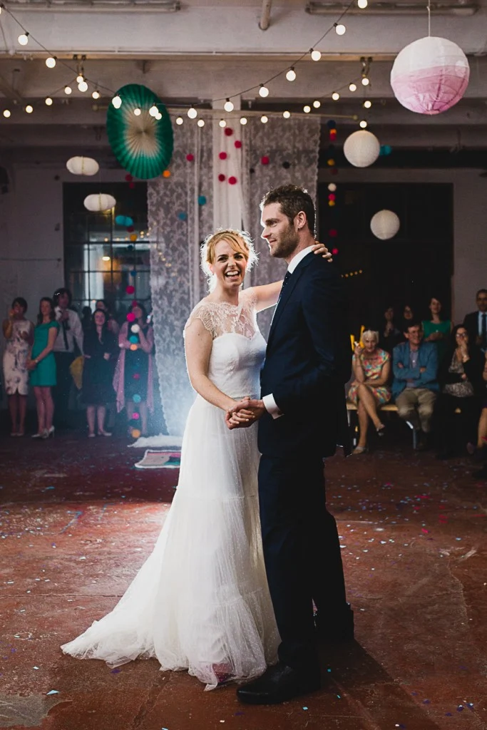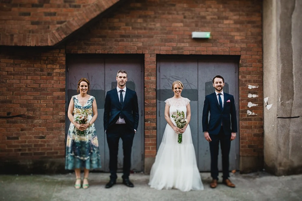 Bride’s dress Rembo?Styling Groom’s suit Louis Copeland Bride’s shoes Vivienne Westwood x Melissa Hair Leah at Queen beauty emporium Make-up Helen Maloney Venue dressing H&G Creations Celebrant Susie Kennedy Music S?ol DJ Steve Reddy