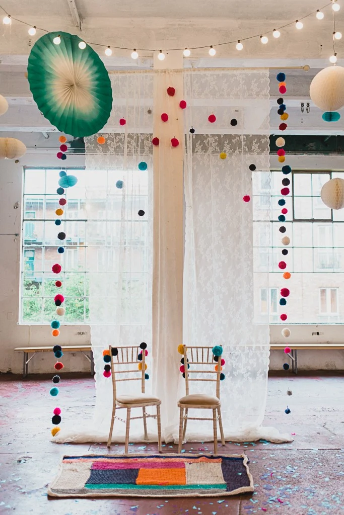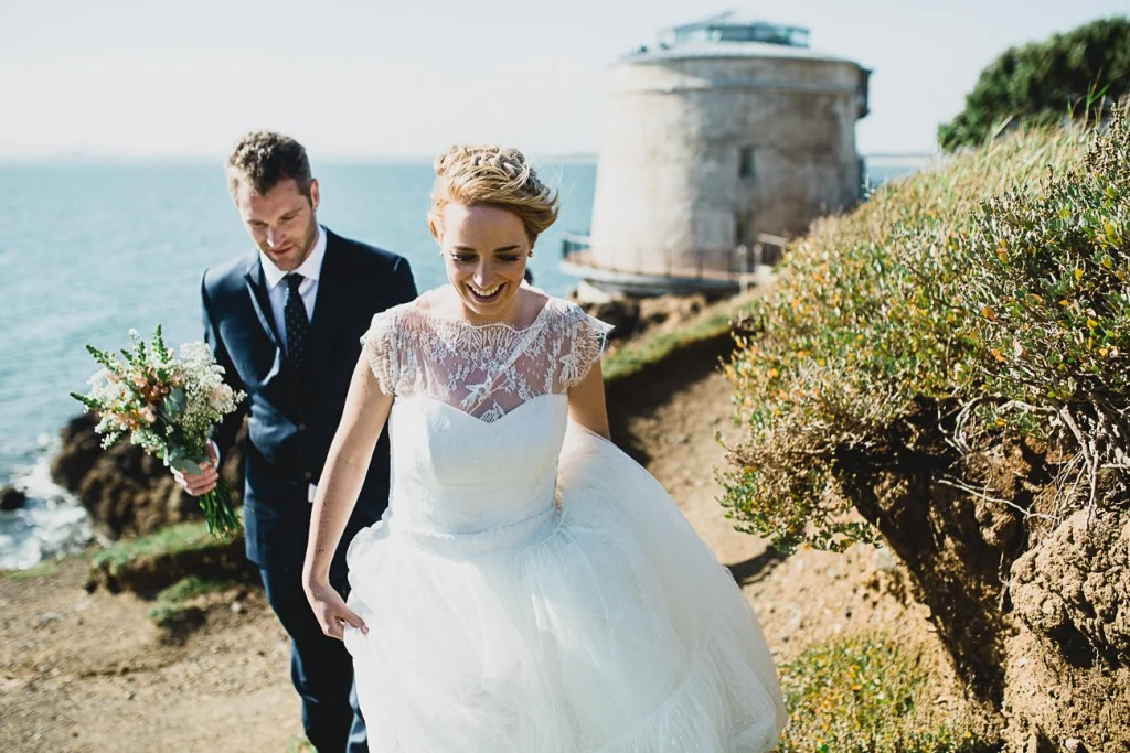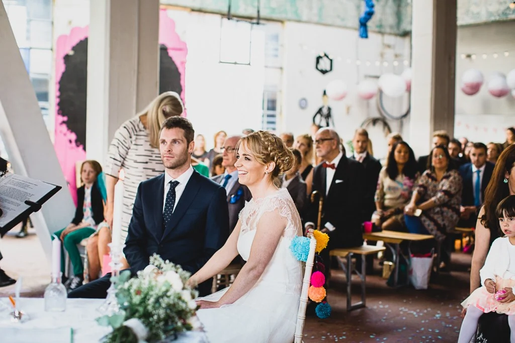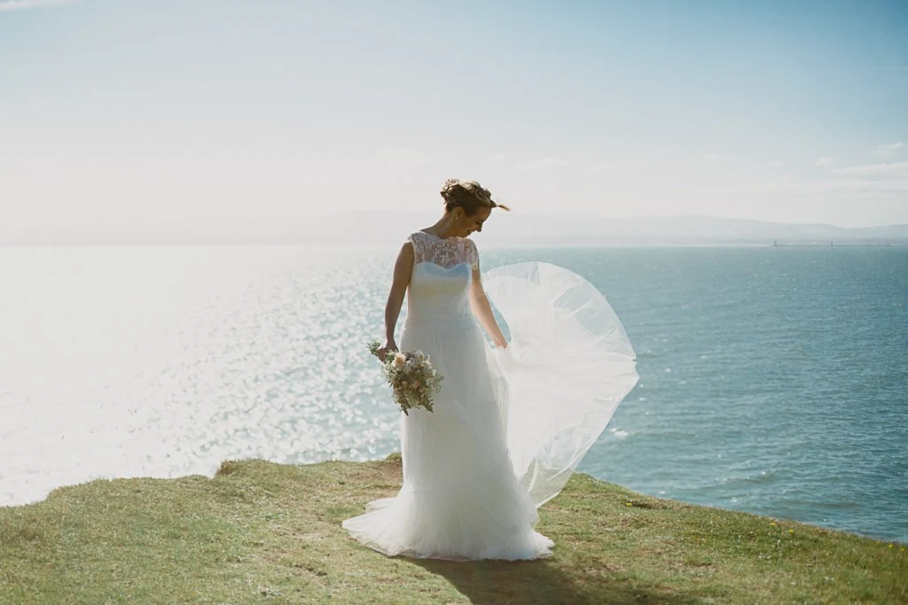 So handmade pom-poms, huge paper lanterns, mismatched crockery and a hand-knitted rug, once part of the event’s mise-en-sc?ne, are now re-used in the couple’s home. A pre-ceremony shoot beside Sutton’s Martello tower provided a stunning opportunity to capture the pair’s love. In addition to their environmental do-goodery, Siobhan and Oscar did well by their budget too. By DIYing every gorgeous detail, the duo created a warm and welcoming vibe that didn’t break the bank.