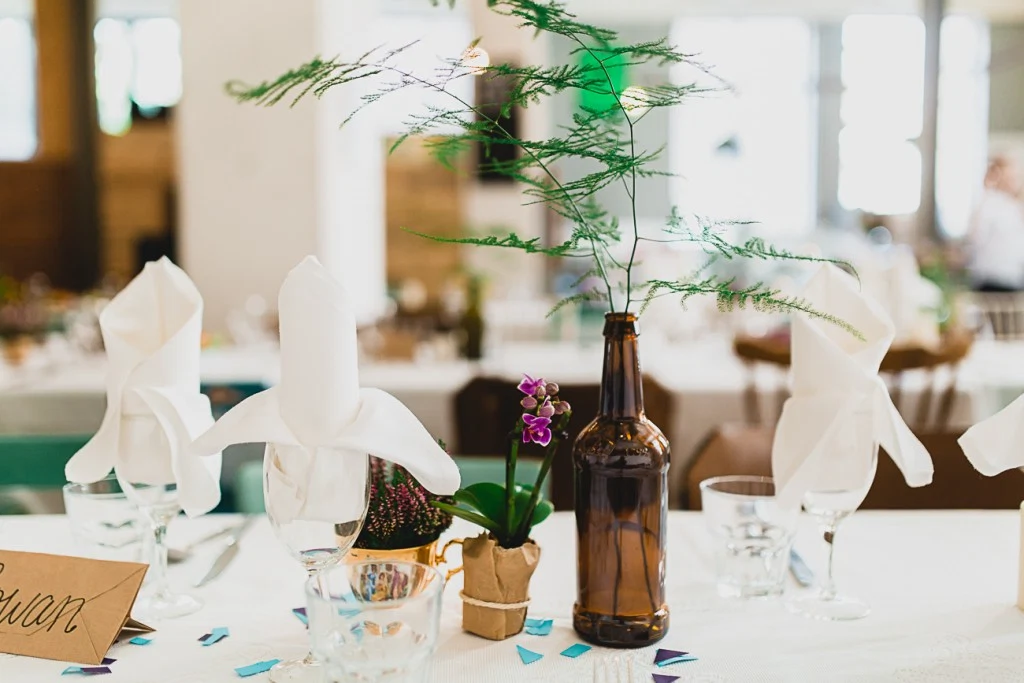 That their wedding be sustainable and cruelty-free was of vital importance to Siobhan and Oscar. In addition to a lipsmacking vegan menu, prepared by Bl’s caf? at the Chocolate Factory, the couple extended the theme to their entire bash. Siobhan’s explanation for this is entirely sound: “We wanted to generate as little waste as possible.”
