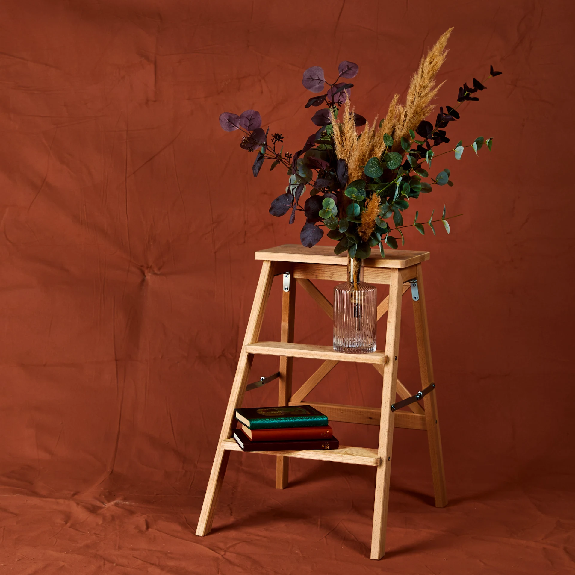There is a great selection of false flowers in the new collection, from pampas grasses to roses and green and red eucalyptus with a subtly sparkling finish from €2.50 per stem.