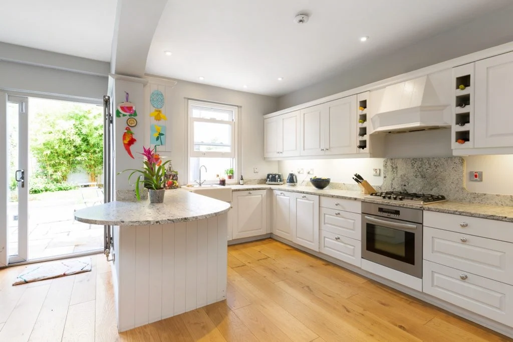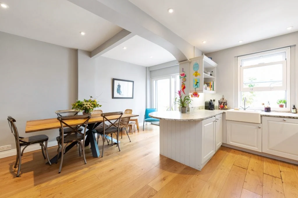 Measuring 4.99 metres x 5.02 metres, the recently-refurbished kitchen-cum-dining room is the true heart of the home.