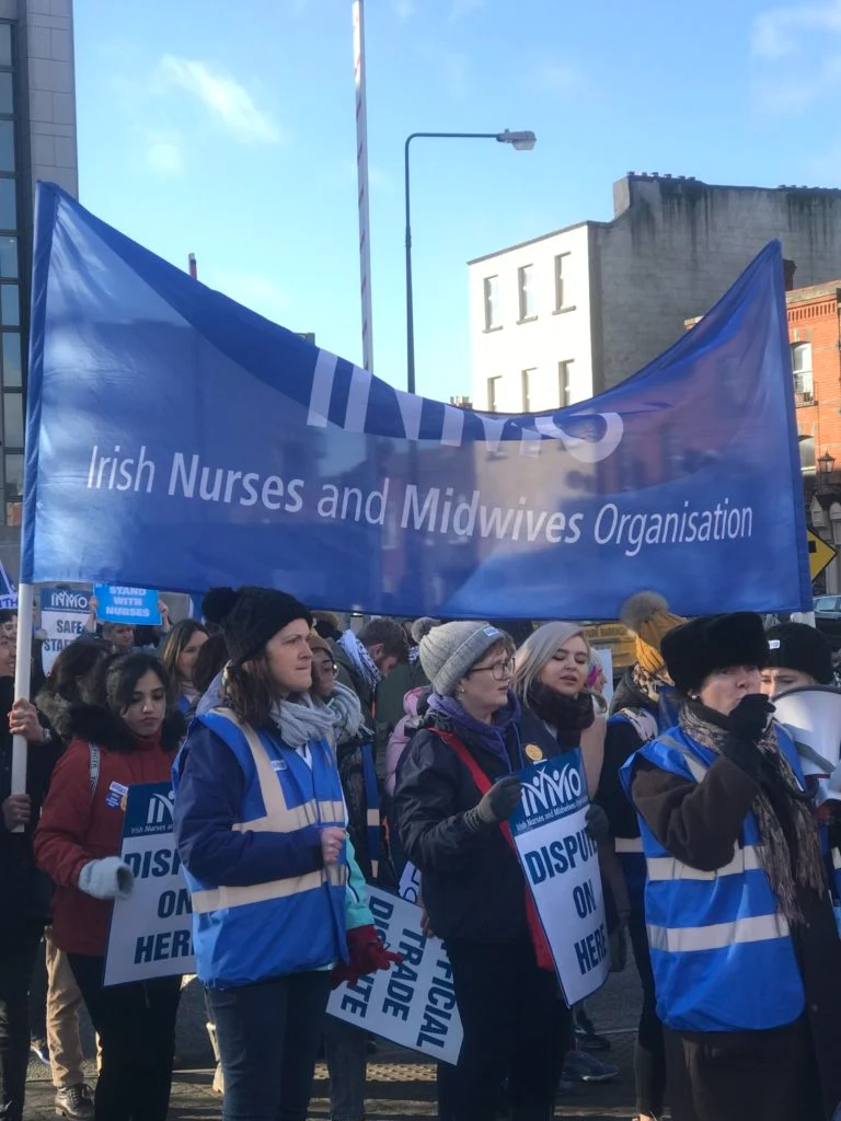 Today, nearly 40,000 nurses and midwives went to the picket lines for a 24-hour strike which began at 8 am this morning and will end at 8 am tomorrow morning. Members of the Irish Nurses and Midwives Organisation (INMO) are protesting against low pay and a failure to recruit and retain staff, which has created a critical level of staff shortages.