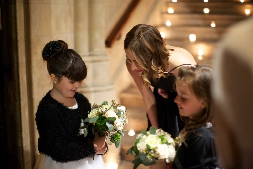 Flowers and event styling Mark Grehan at The Garden?Catering Neil Shirt Catering?Hair Aviary Lane?Makeup Niamh Martin?Bride’s dress Hayley Paige?Groom’s suit Custom Ralph Lauren?Bridesmaids? dresses Reformation