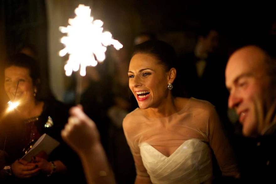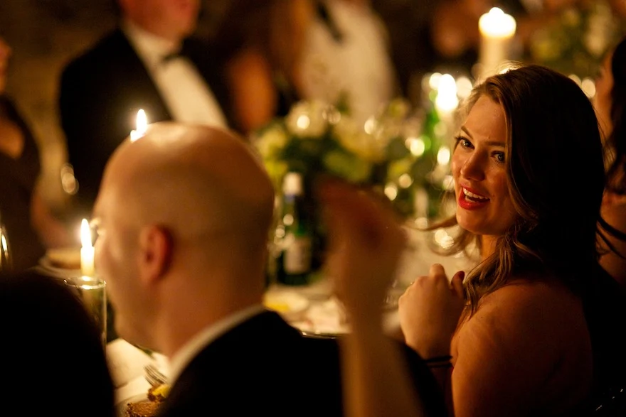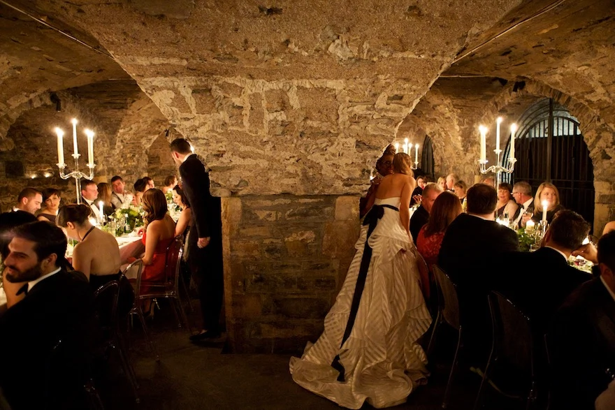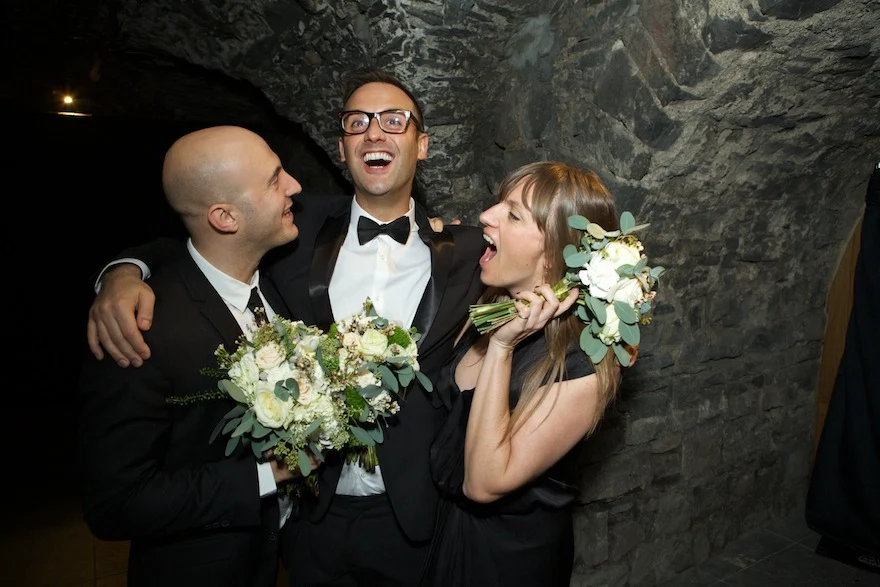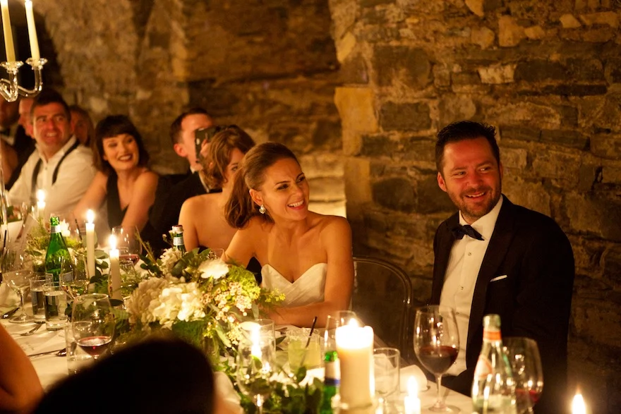 Their Favourite Thing?The venues.?Exposed and vaulted stone, illuminated by candlelight, lent a gothic beauty to the couple’s classy after party in The Vintage Cocktail Club.?Dispensing with weather worries, this duo opted for an evening ceremony in lavish, yet cosy surroundings. A brilliant idea in our, erm, changeable climate.