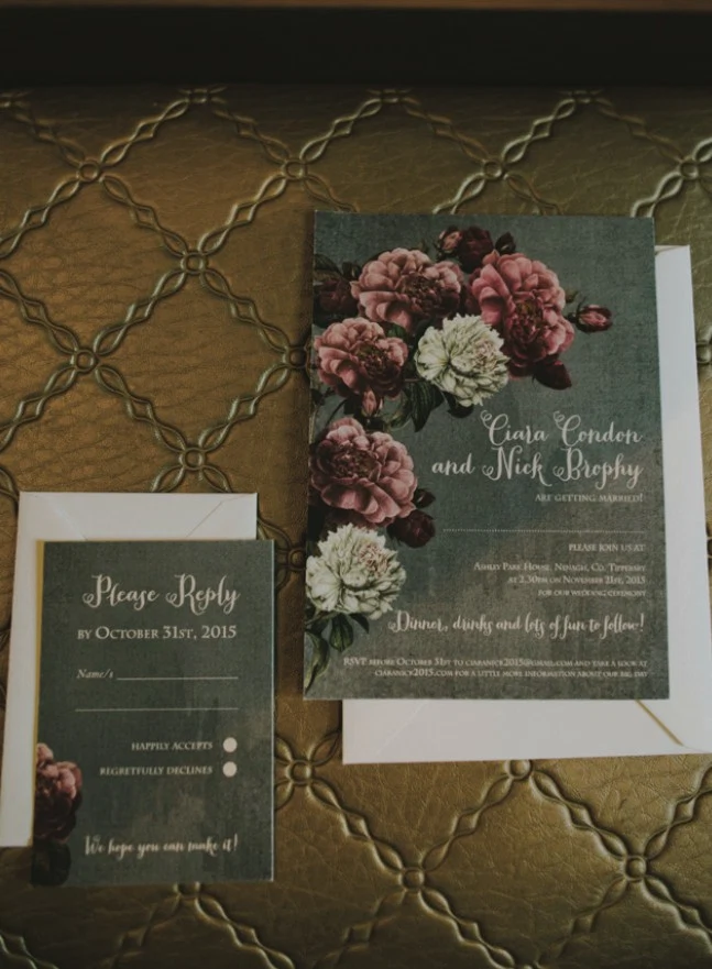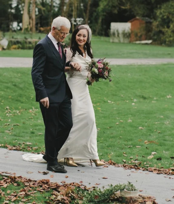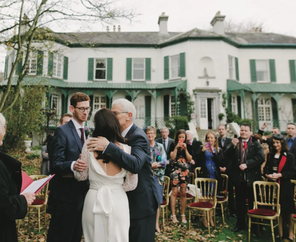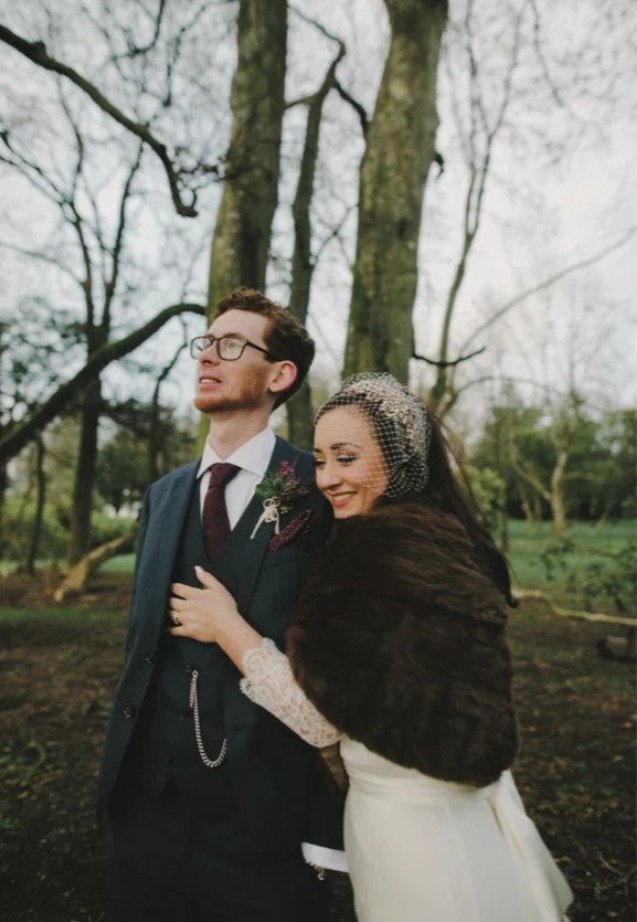 THE CEREMONY Eschewing sunshine and soaring temperatures for an autumn wedding in Ireland’s midlands. Ciara and Nick succeeded in creating a dramatic vintage feel for their bash. An outdoor ceremony conducted by a humanist celebrant initiated the proceedings.