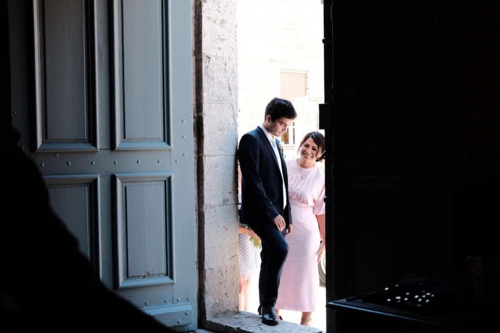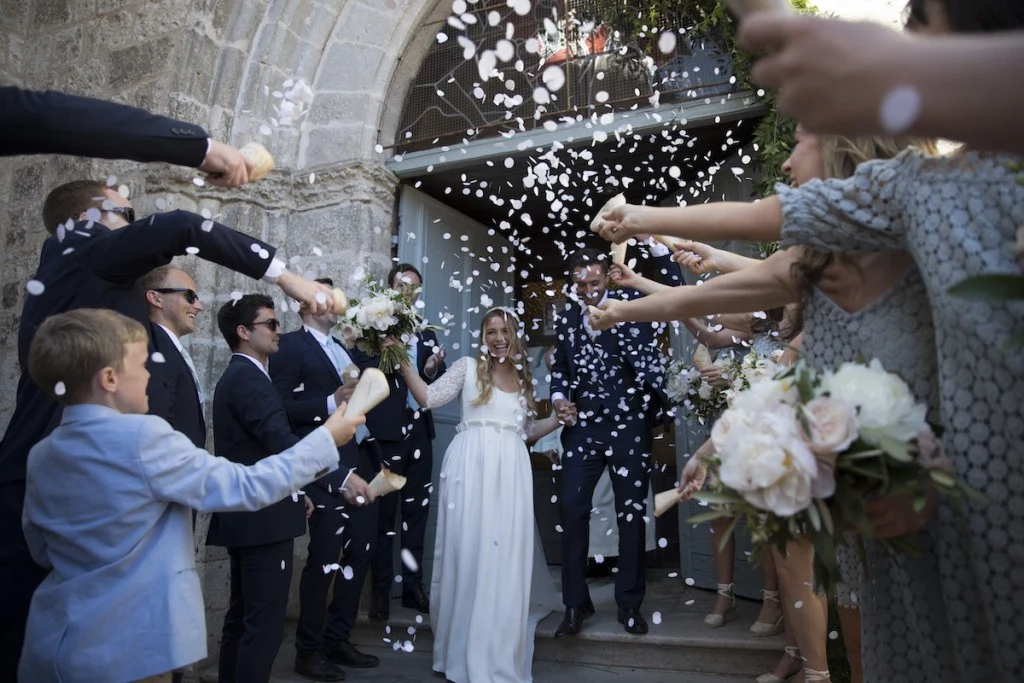 The wedding of Sophie Power and Darragh Mallon was befitting of the manner to which this relationship first began: at the very first Arthur’s Day in Temple Bar when the pair were in college. Laid-back and informal, the day kicked off with a ceremony in a mediaeval church in a hilltop bastide, where Sophie, who works at Jo Malone London, wore a silk, satin and lace Lorafolk gown, paired with a Eugenia Kim hairpiece, Jenny Packham veil and flowers by Jenny Moss.