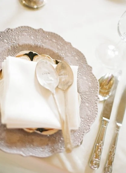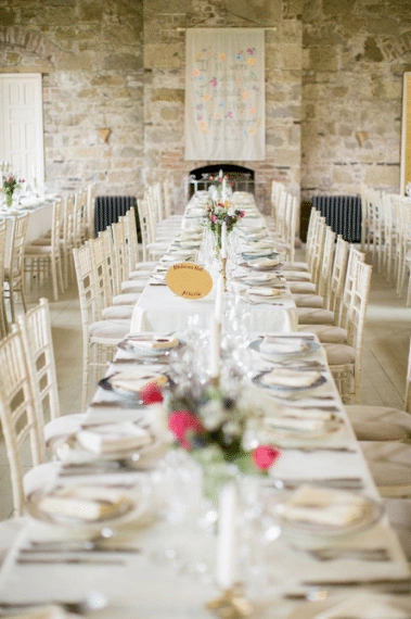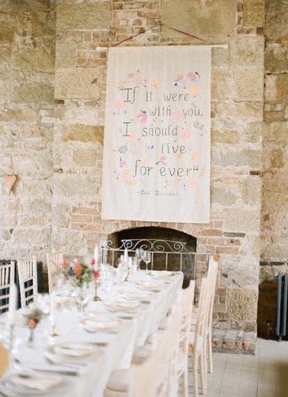 Personal touches were seen throughout, from the tapestry featuring the pair’s favourite poem (painted by Claire herself), to the hand-stamped spoons, which served as guests seating cards.