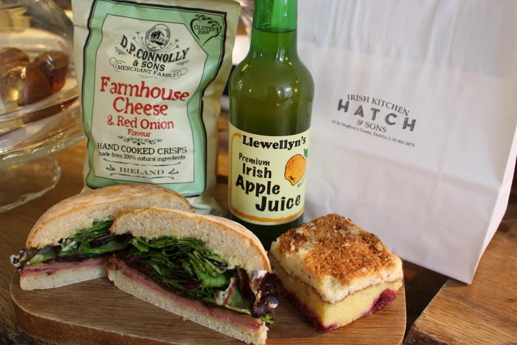 Hatch & Sons, beneath the fabulous Little Museum of Dublin, is one of our favourite city snugs, so when they offered us the chance to have a glimpse at their new menu we got very loud and hungry tummies.?What’s new? Pulled spiced brisket blaa served with tomato, rapeseed mayo and Cultured Food Company kimchi?for a mere €7.50, a superfood salad with hero sprouts and hedgerow dressing, and the return of Hatch & Son’s picnic packages. Ideal considering St. Stephen’s green is a hop away. The picnics include a blaa of your choice, bottle of Llewellyn’s Irish apple juice, DP Connolly crisps and a freshly baked square cake (lemon-raspberry coconut slice or brownie) for the discounted price of €12. Sounds far, far better than the squashed jam sandwiches we were subjected to during our childhood.