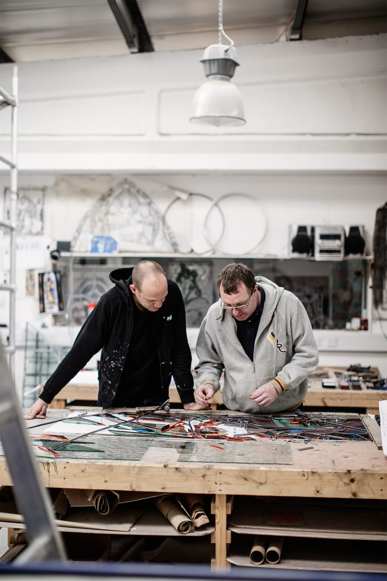 We visit artist James Earley before his most recent exhibition as he tackles a rather traditional art form – stained glass. Looking to modernise it in a way that works with his already-extensive body of work, James aims to capture the freedom, movement and fractious nature of his mural and canvas work in glass.