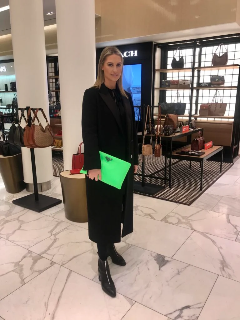 Wearing: Prada clutch