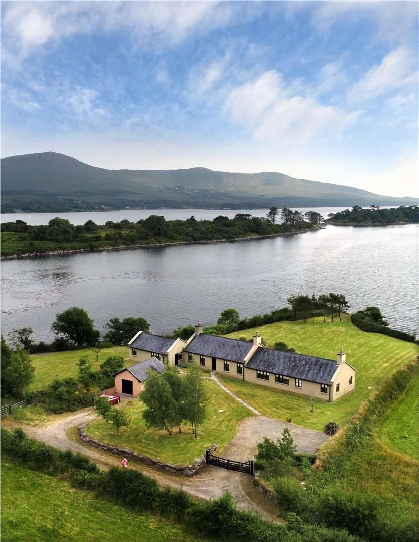 On the market for €995,000, the bungalow has views down to the water and across the bay, as well as back towards Killarney National Park. Within the mature 1.4 acres of land there’s also a detached garage and plenty of parking spaces.