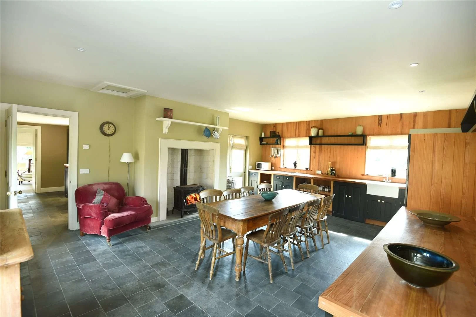 We’re genuinely quite smitten with the interiors for this home, the soft green wall palette complements perfectly with the lush views and the flagstone floors and ample firesides make it the perfect place to cosy up in, come summer or winter.