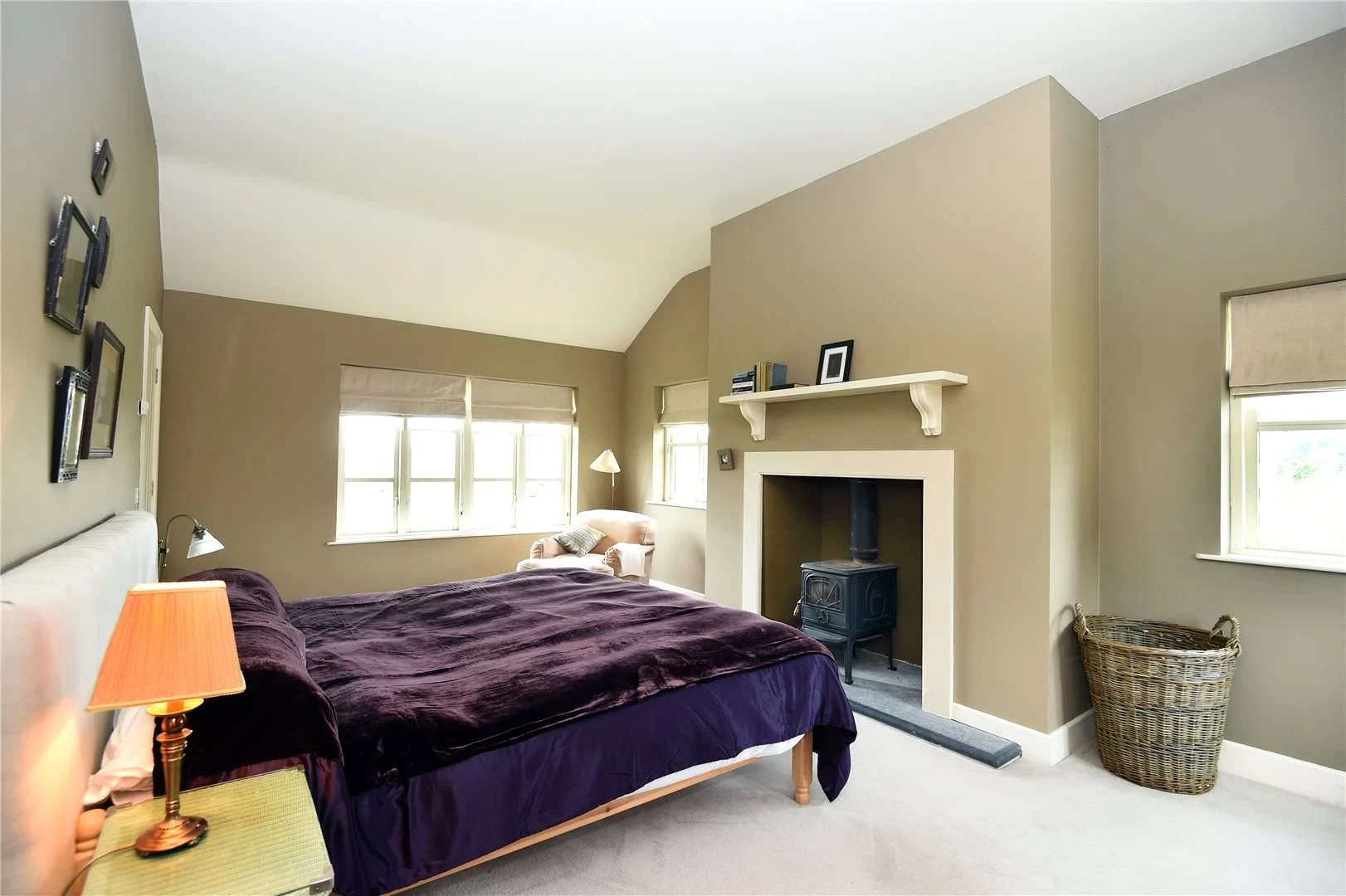 Inside, the house is laid out across 206 square metres, with many rooms enjoying a dual aspect that maximises on views. A large country-style kitchen/diner welcomes you from the front hallway, which has a stove and French doors onto the seafront garden. Also off the hallway is a boot room/utility, bathroom and the first of the three bedrooms, located in the quiet gable end. With 270º views, this bedroom also has an ensuite and built-in wardrobe.