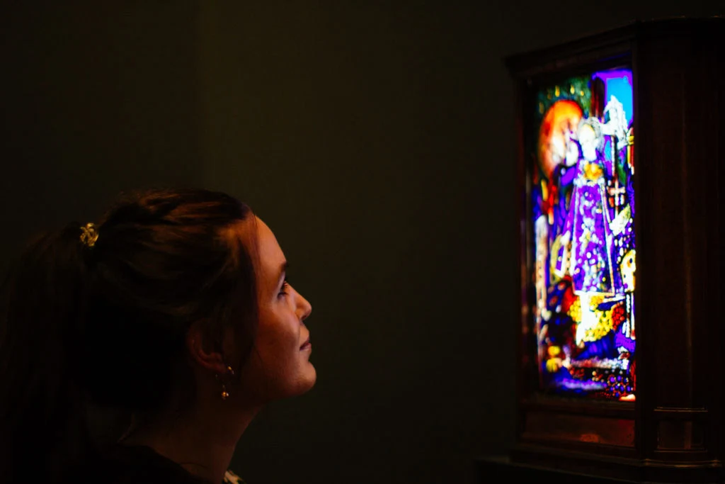 The sensory-friendly workshops are held in a cordoned-off section of the gallery. “One day we were in a stained-glass room,” Clíona explains, “which was gorgeous because it was cold and dark. It was really, really nice. One of the main things is that it’s quiet – and no queuing is a big deal,” she says.