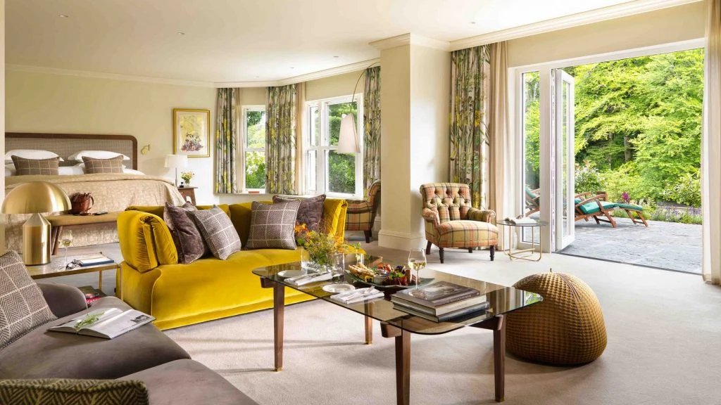 Co Kerry is world renowned for its natural beauty and Kenmare’s Sheen Falls Lodge is suitably scenic. This five-star Relais & Chateaux hotel is set on a rambling estate of 121 hectares, where guests can even try salmon fishing on its private stretch of the River Sheen. The estate’s once-resident heron has now lent its name to the Oscars Suite, which marks the final phase of the Lodge’s two-year refurbishment. And it’s worth the wait. The open-plan suite has a separate dressing room (living the dream!) and double doors that lead out on to a private terrace overlooking the waterfall of the hotel’s namesake. Tactile tweeds, velvet and soft cotton, while lovely, can’t even compete with that verdant view. The Oscars Suite costs from €1,000 per night, and the adjoining Signature Suite is €640. (Gortnadullagh, Kenmare, 064 664 1600; sheenfallslodge.ie)