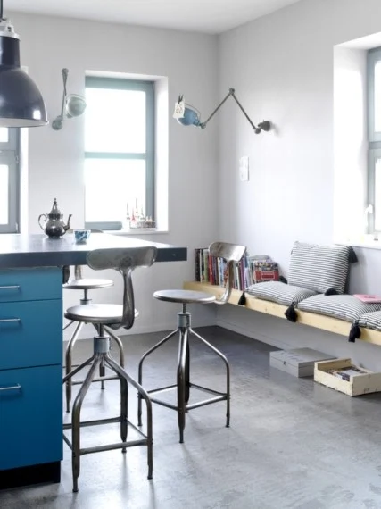 It wasn’t easy. It took the group of friends three years to get permission to buy the building and renovate the outer shell. Together they renewed the windows and put in electricity, gas and walls to separate the apartments; after that, everyone renovated their own apartment separately. For Anne and Jean-Francois, that took six months. The floors were not suitable to even walk on – as a legacy of the guns and scooters formerly made in the building, everything was greasy. They hired an architect, Fran?ois Muracciole, who designed everything and turned the former factory into a home.