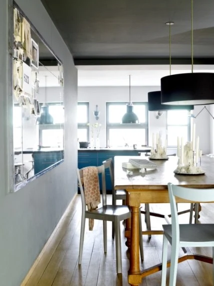 Anne and Jean-Francois’s apartment is about 350 square metres (one of the bigger ones) and the walls are nearly five metres high. “Our apartment is on two floors,” says Anne. “Downstairs is more open, with the big living room, Louise’s room, the guest room. Upstairs is divided into separate spaces. It’s nice to have the shared space as well as the possibility to withdraw.”