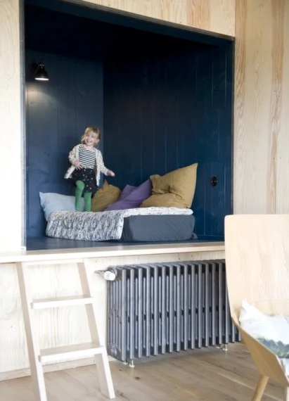 The staircase was designed by Fran?ois Muracciole. ?The colour of the walls is my choice,? says Anne. ?The radiator is an original old-fashioned one. There's a company that does old ones up so that they can be reused. We made the swing ourselves, from a piece of wood. The cupboard was left behind in the factory - Jean-Fran?ois found it.?