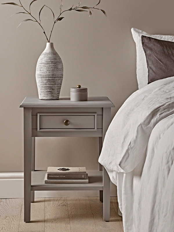 A simple but classy bedside table. Camille Bedside Table—Grey, €286.89, Cox & Cox