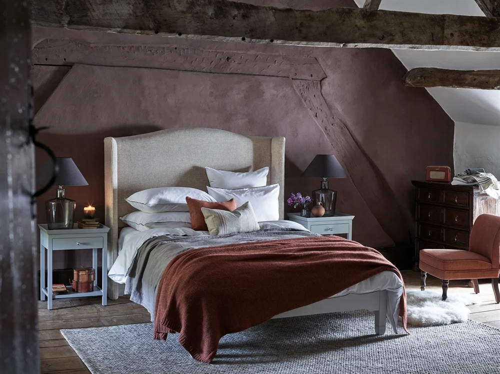 Classic but minimal, this headboard saves space with its slots for Neptune’s Rathbone reading lights.