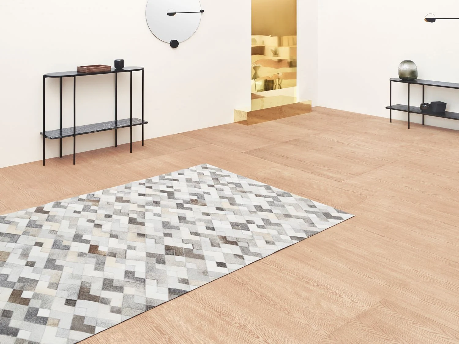 A design reminiscent of mountains, this 100% leather rug speaks of time among Ireland’s hills.