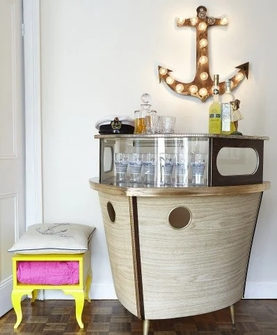 Stepping inside Andrea Horan’s house is like taking a mini holiday, complete with palm trees, cocktails, and, em, a boat bar?