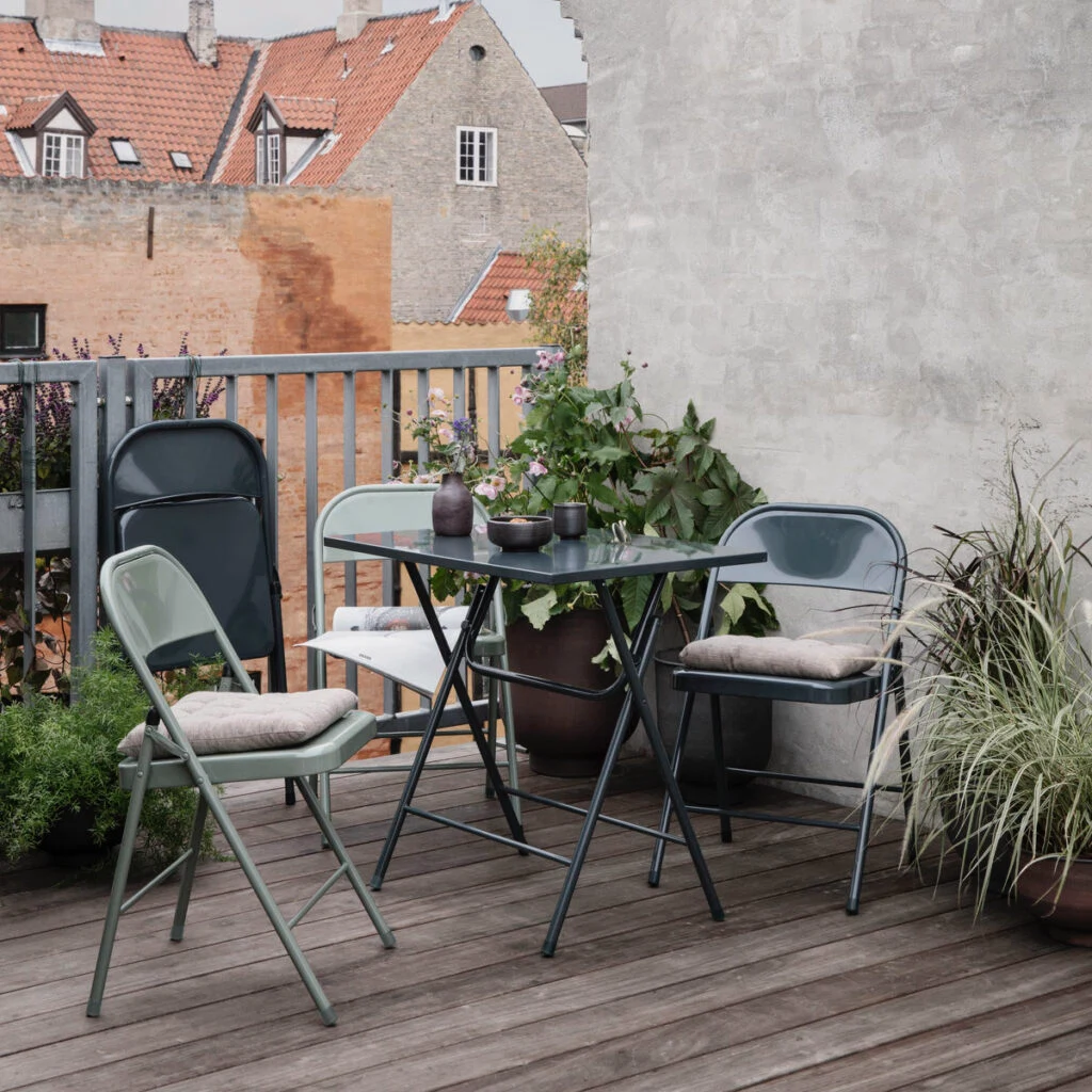Just because your outdoor space is small doesn’t mean you can’t enjoy an al fresco dinner with these tables that easily fold away.