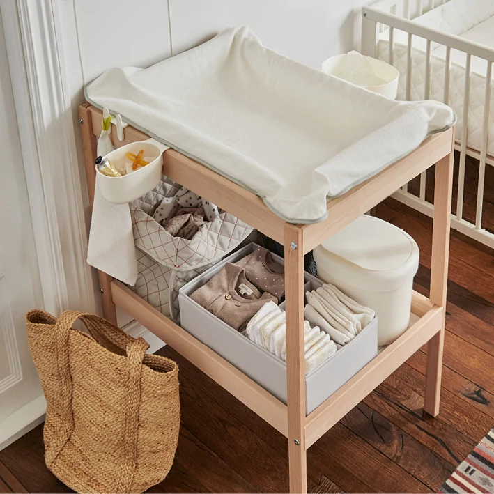 I initially thought a changing table was an overrated gimmick and wasn’t prepared to spend a fortune on one. I quickly realised how wrong I was and, even more broke than pre-baby days, I found an old drinks trolley that I painted white. It was perfect, the height was just right, the changing mat fitted into it as if it was made for it and the shelf below was great for storing nappies, wipes and Sudacrem. If the idea of a drinks trolley in your baby room is too much of a juxtaposition, then have a look at the Sniglar changing table from Ikea, it is cheap, simple and practical.