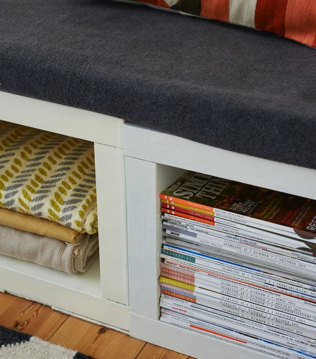 “A reading nook can bring a cosy feel to your living room,” she says. “It’s a great place to snuggle up with a good book and a cup of tea, and also provides lots of extra seating when you have friends over.” The best thing is, you can make this?nook in ?just one afternoon. “I used three small cube tables for this hack, but you can use a different quantity to make your bench as long or short as you wish.”