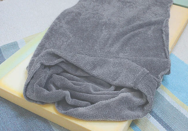 5. Turn the cover right side out. Wrestle the foam pad inside the cover – it will be a little snug, but it will fit.