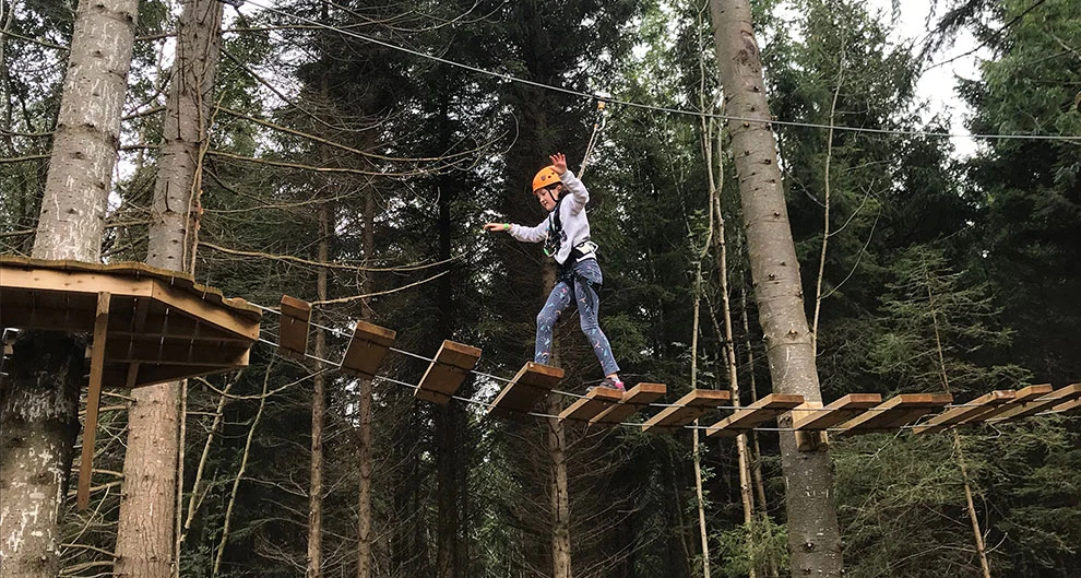 Katherine, 9, braves the aerial tree trekking at Center Parcs in Longford. Photo: Lizzie Gore-Grimes