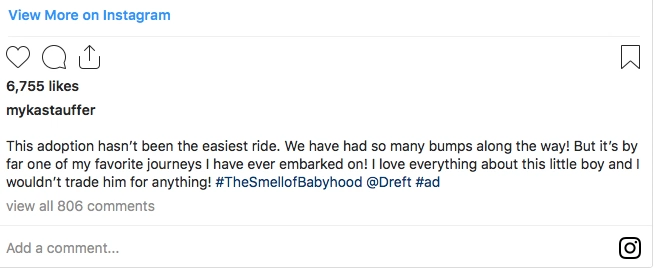 In one particularly heart-wrenching Instagram post last year she wrote: “I wouldn’t trade him for the world.” It was a sponsored post for Dreft Baby Detergent.
