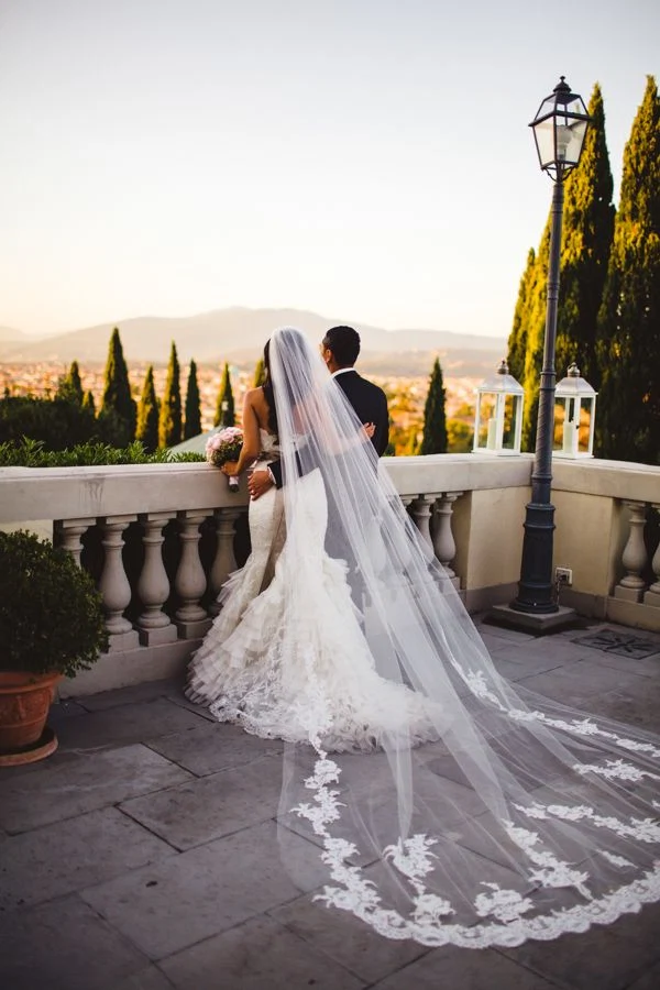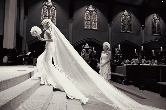Think Diana Princess of Wales. This type of veil is generally reserved for if you’re marrying?royalty or saying ‘I Do’?in a VERY dramatic venue that warrants an over-the-top veil. Otherwise, it looks just that, over-the-top.