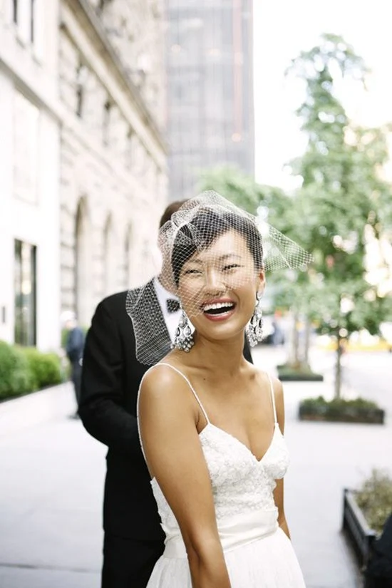 This is the shortest type of veil that generally just comes to the nose or chin. They’re a nice nod to the tradition without the hassle and are back in style as of late after they accessorised the faces of’models at?the holy grail of fashion trend birthplaces – the Chanel Haute Couture S/S 2015 fashion show.