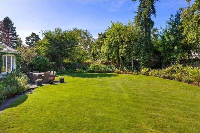 The house sits on a 0.3 acre site, with a secluded south-west facing garden to the rear. A patio area beside the house provides space for al fresco dining, while there is a large lawn area, ideal for children, that is surrounded by trees and shrubs that provide privacy.