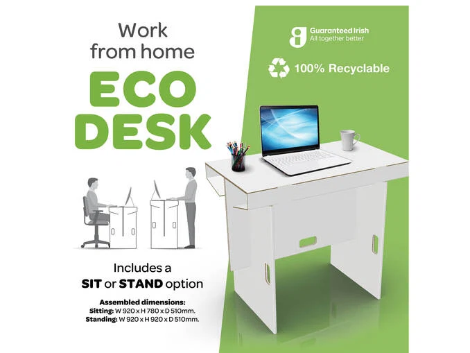 The eco-friendly desk is made entirely of recycled cardboard and is easy to put together and deconstruct for storage.
