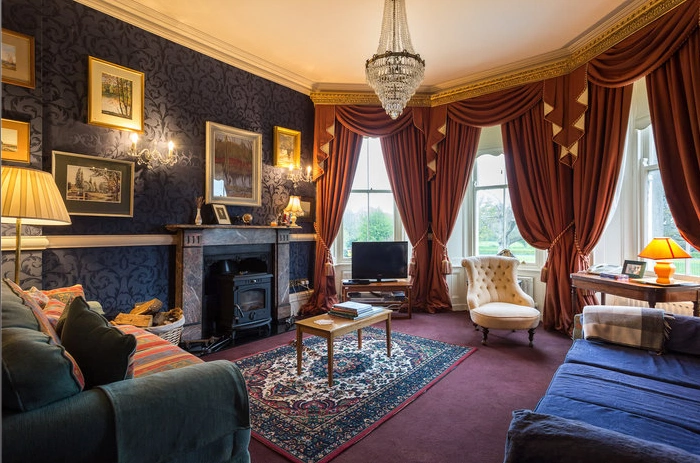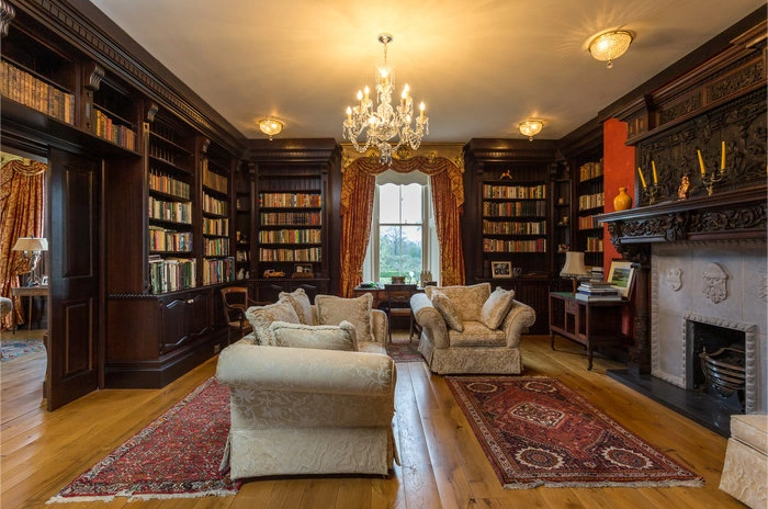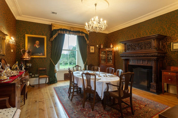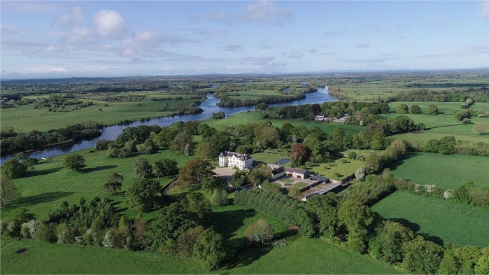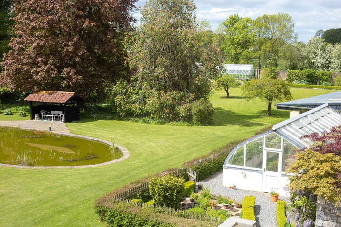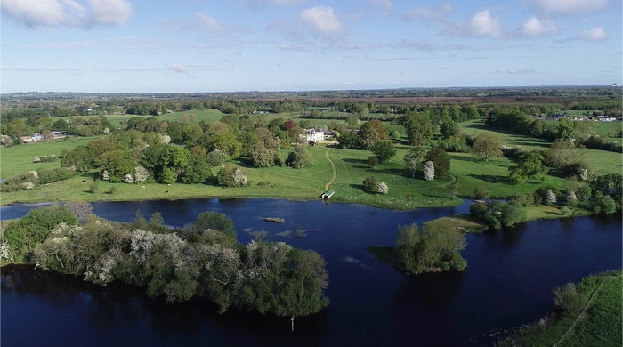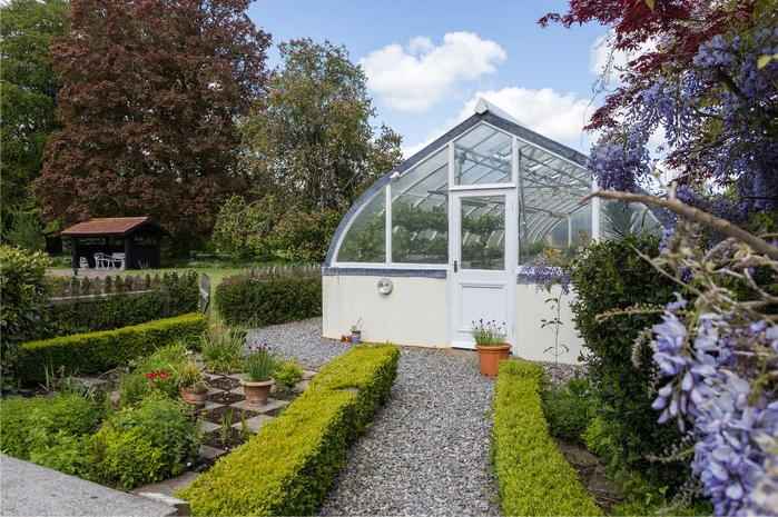 The house is set in beautiful parkland, which features many ancient indigenous Irish elm, beech and sycamore trees. Lush meadows have a series of clipped pathways through them that take you along a river bank walk and connect to a small island. The formal gardens, positioned to the rear of the house, including an Edwardian vine house which has home-grown figs, apricots and peaches.