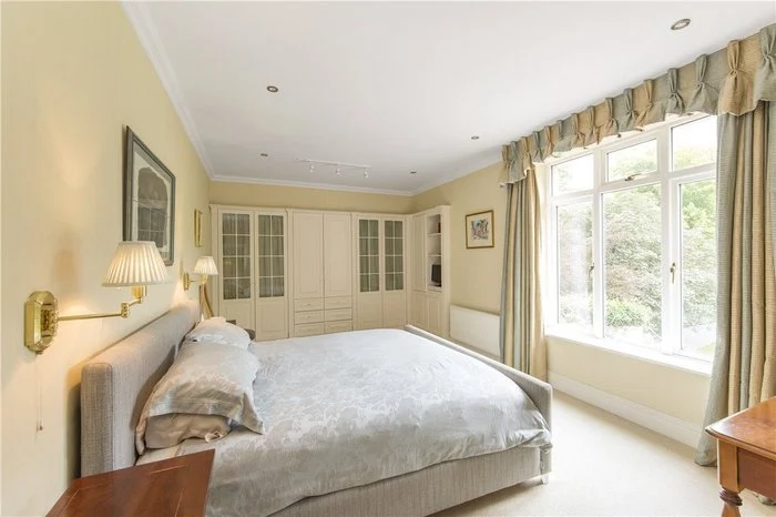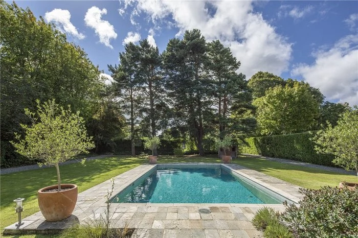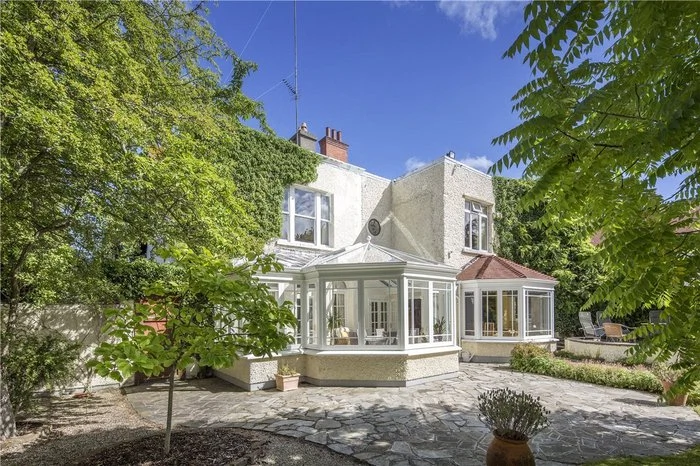 This Edwardian home has an impressive seven bedrooms, as well as a large garden complete with swimming pool and tennis court.