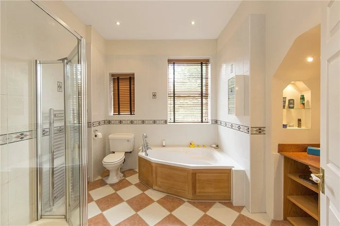 There are five bedrooms on the first floor, and a further two on the second floor. The master bedroom has an ensuite and there is a large family bathroom on the first floor with a power shower and corner bath, as well as underfloor heating. There is also a laundry room on the first floor complete with sink and airing cupboard.