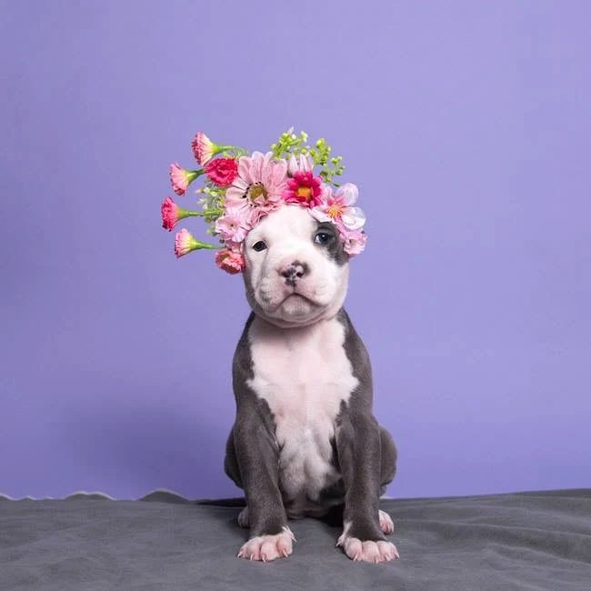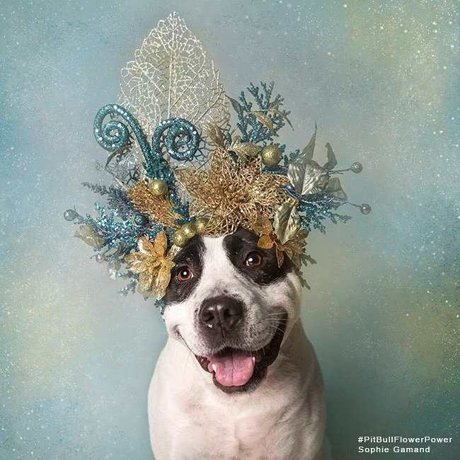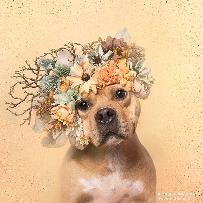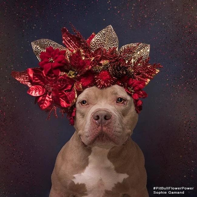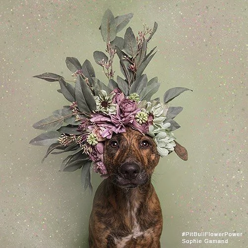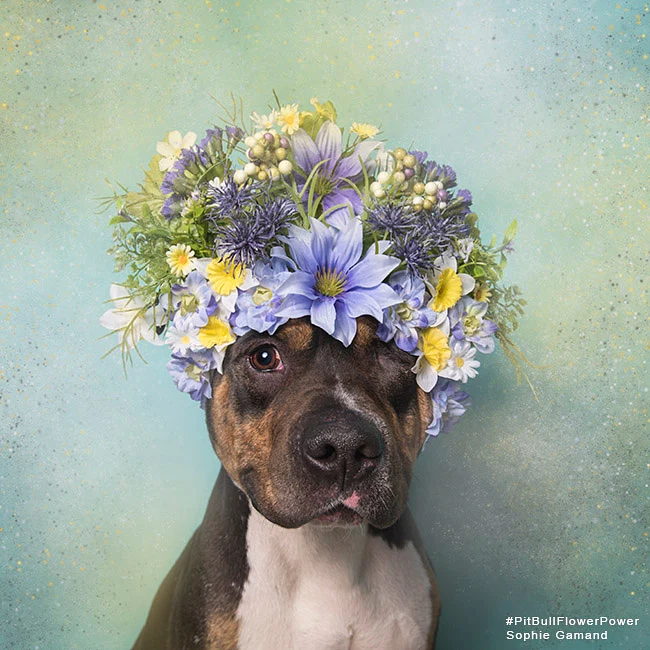 Titled ” The Flower Power Series: Pit Bulls of the revolution”, her photographs help to rehome some of the saddest cases of neglect, and she regularly updates her followers about her success stories like this one below. “Unfortunately, because of their bad image, they have the false reputation of being more dangerous than other dogs, hence attracting irresponsible primary owners who are looking for a “scary dog”, and seek to develop those traits in them. Pit bulls’ downfall is to be exactly the way we created them: strong and loyal. With this series, I wonder if art is a tool powerful enough it can change pit bulls’ fate,” she says.