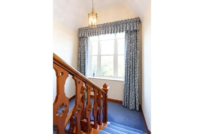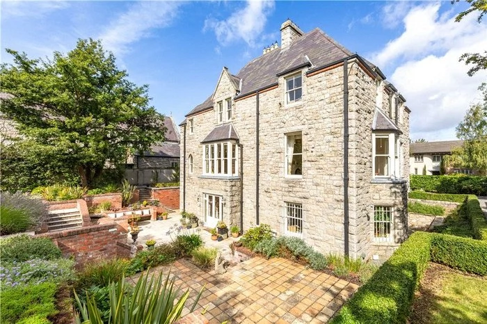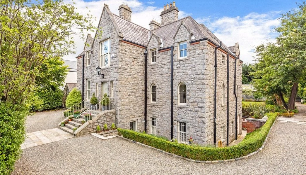 Built in 1873, The Old Vicarage in Blackrock is an impressive family home with five bedrooms and 0.4 acres of south-facing grounds. The double-fronted residence has a granite staircase that leads up to the front door, creating a grand entrance.
