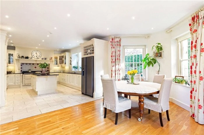 Inside, the house has been recently modernised and refurbished, yet still retains plenty of character. The main reception rooms, including the dining room, drawing room and kitchen, all have large windows that give extensive views out to the garden.