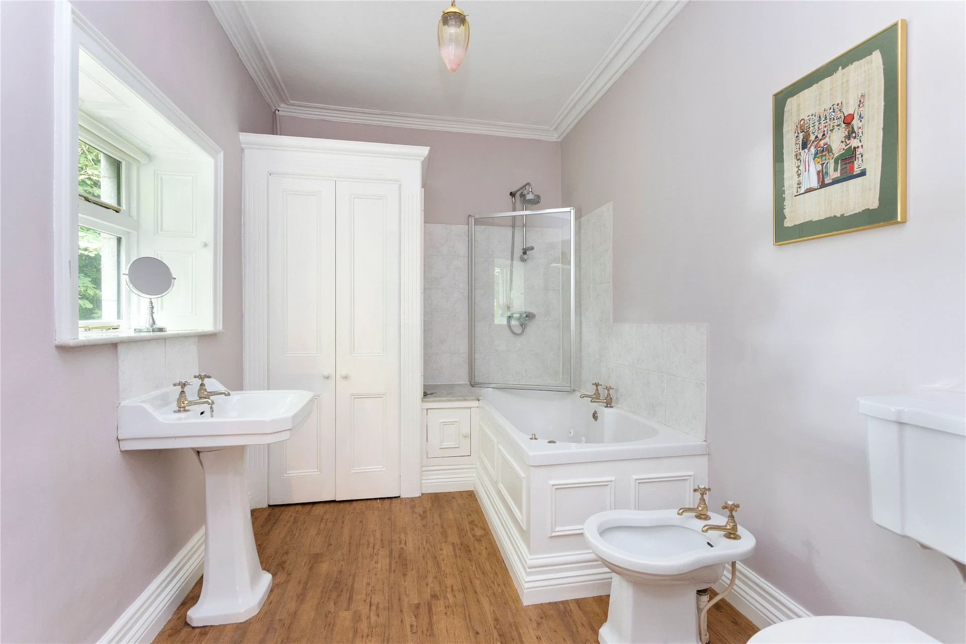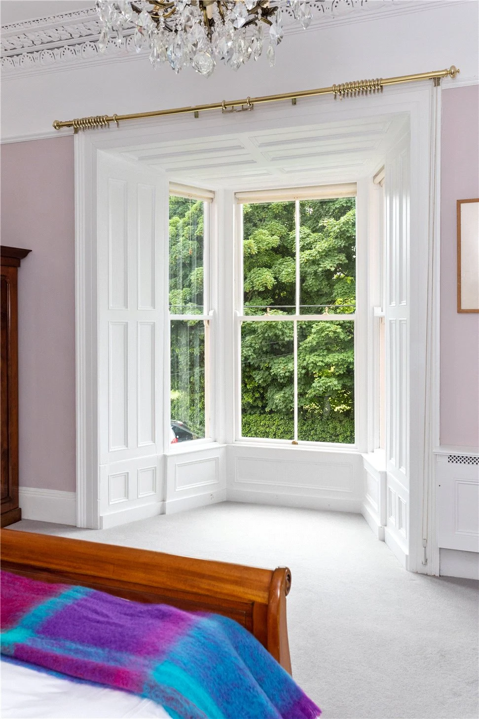 Upstairs, the four double bedrooms are well-sized. The master in particular benefits from the bay window at the front of the house and also has its own marble fireplace, making for a very grand room.