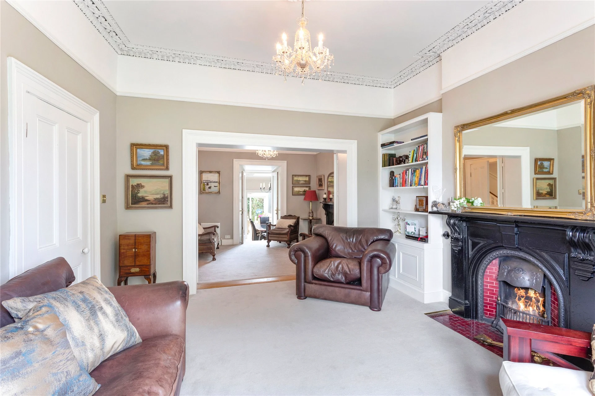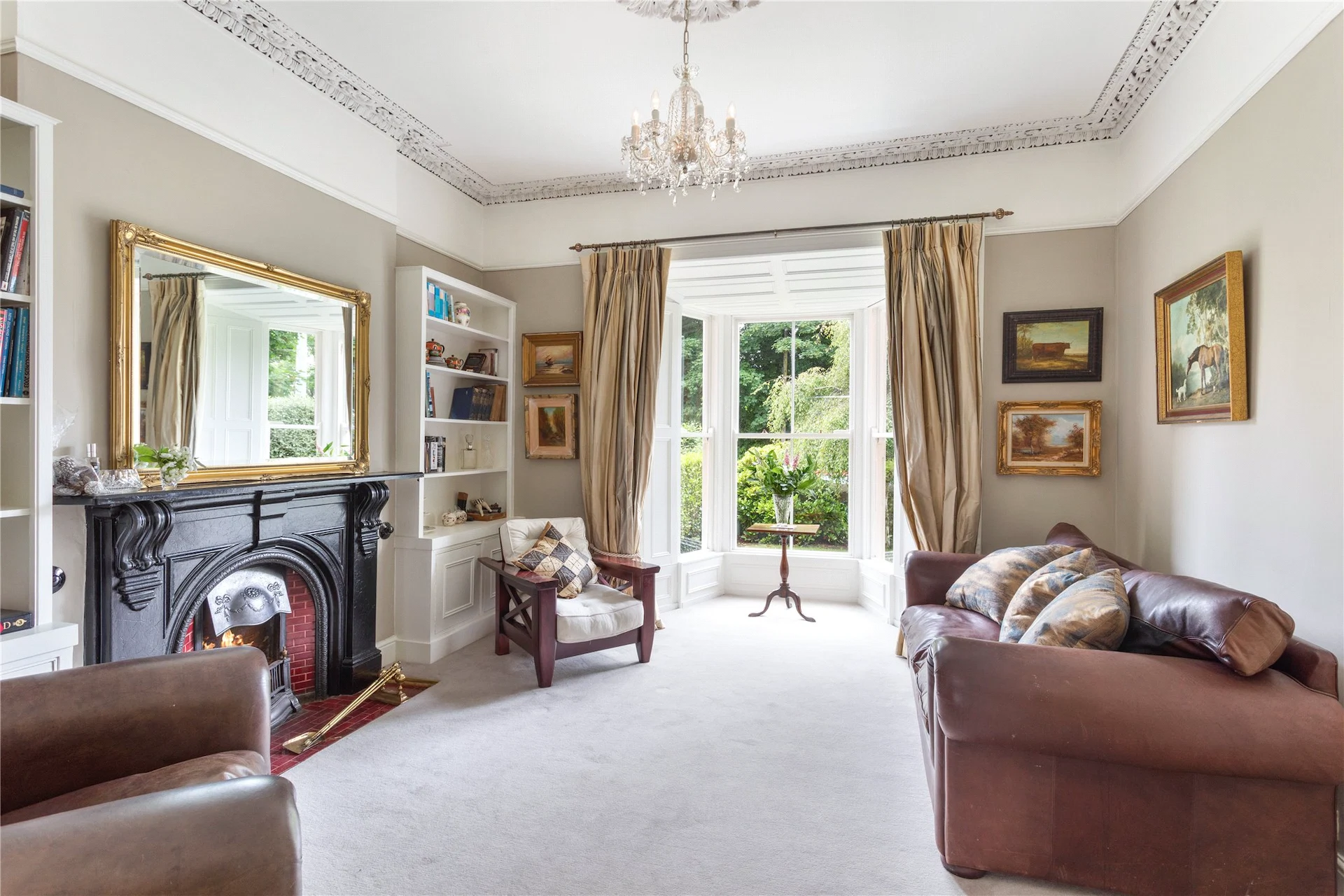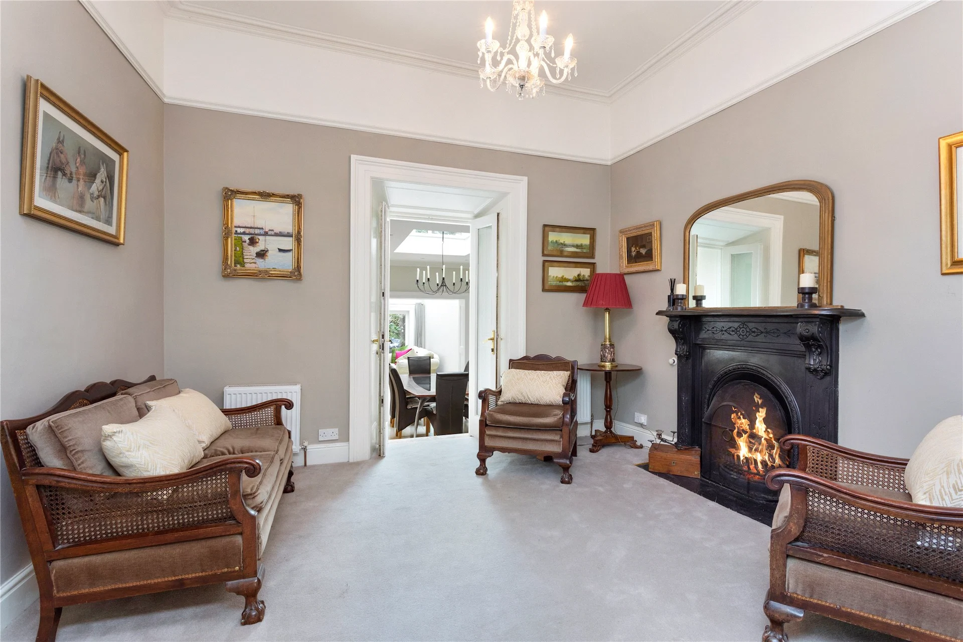 The entrance hall benefits from beautiful stained glass windows on the inside door and fan light, adding light and colour to the space. A large bay window ensures the main reception room to the front of the house has ample light, while its high ceilings and decorative ceiling cornicing give the space its period character.