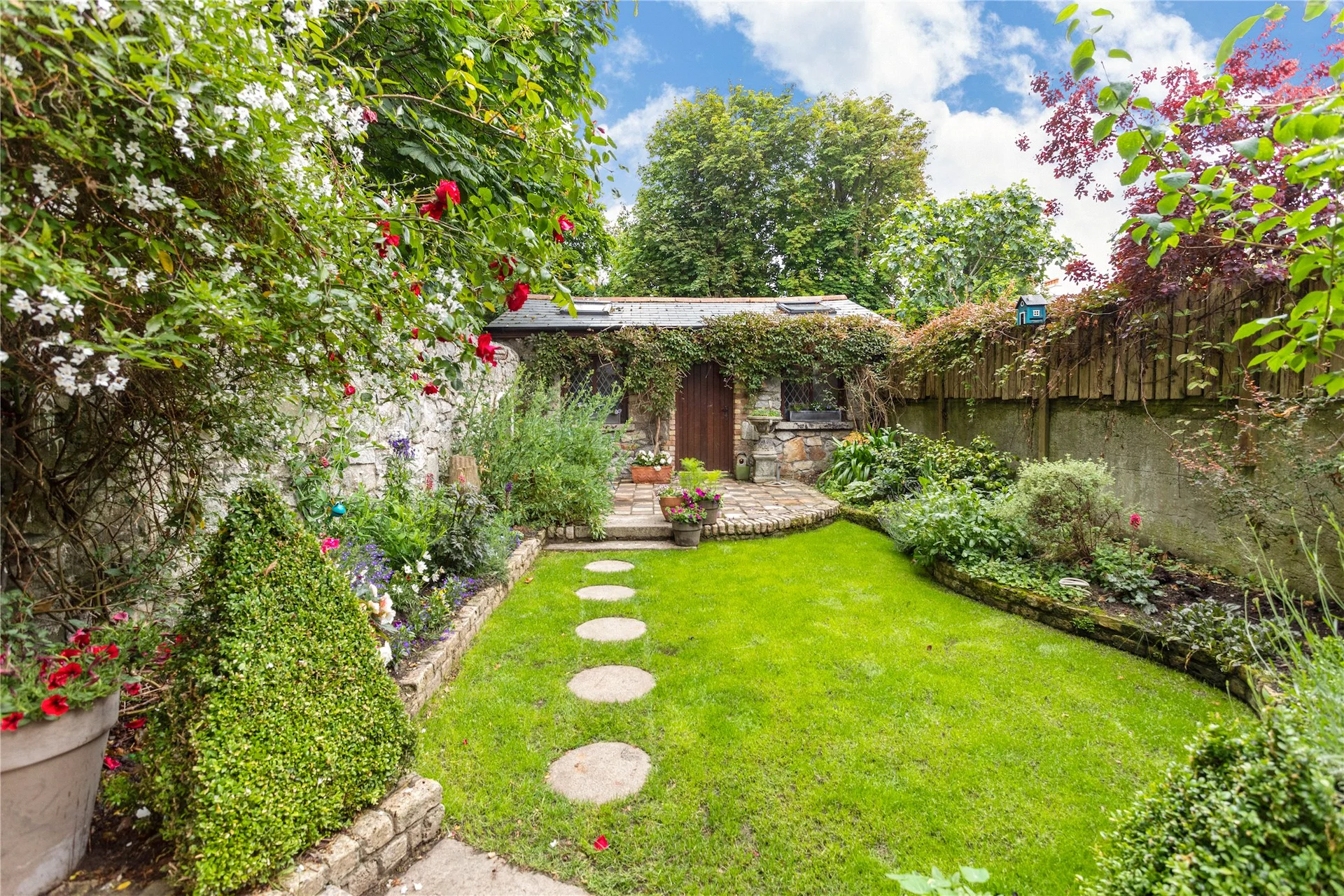 The rear garden has a lawn and two patio areas: a private and sheltered space, with beds along each side to add colour. At the end of the garden is a granite-clad garden room. Adorned with a climbing plant, it is particularly picturesque, and fits in well with the style of the house. This space has the potential to be used as a home office, gym, or studio, and would certainly be a bonus for many prospective buyers.