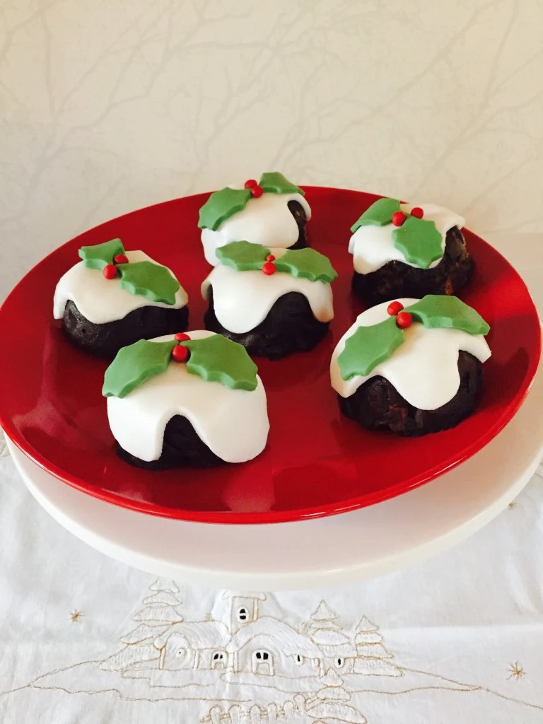 - Cut out holly leaf shapes and roll out some red berries and place on top of the splats.