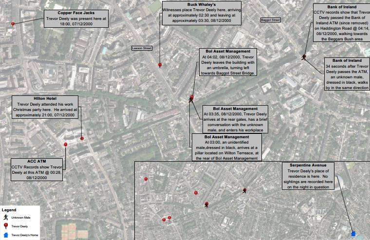 After the party, he headed to the popular but since-closed Buck Whaleys nightclub on Lower Leeson Street. Detectives believe that at around 3:30 am, Trevor left the club and began walking towards the apartment he rented in the Renoir complex on Serpentine Avenue in Ballsbridge.