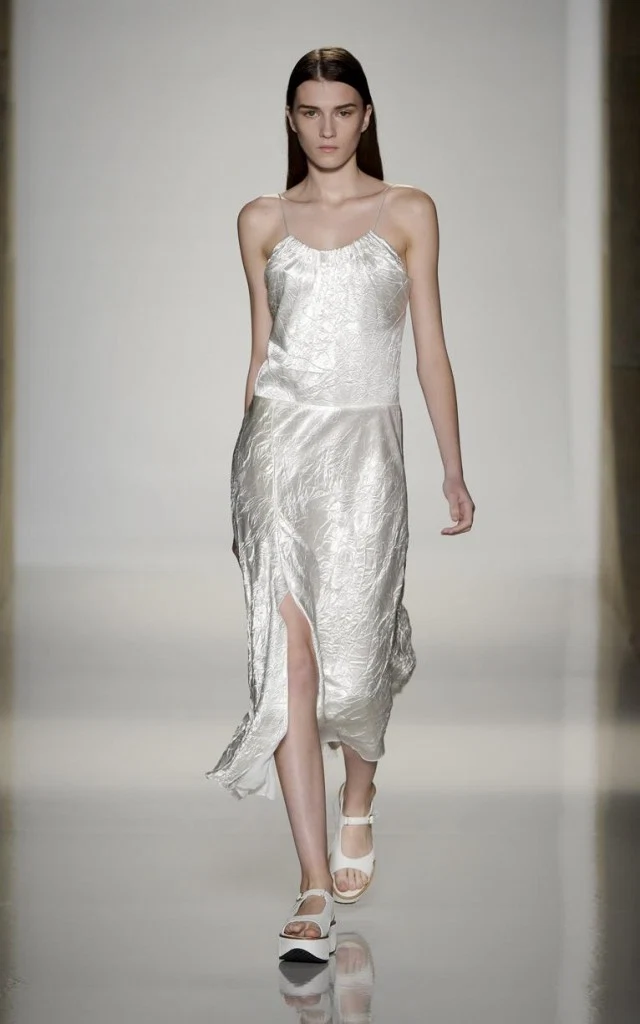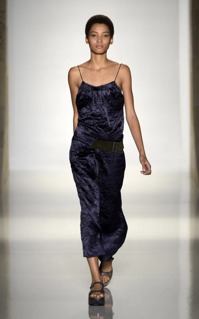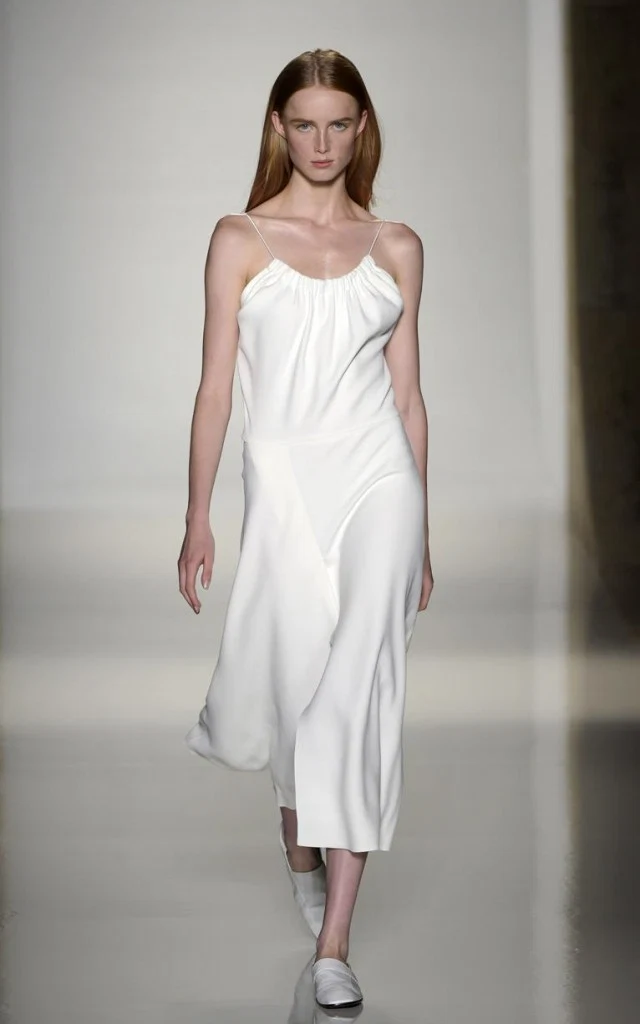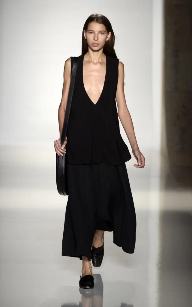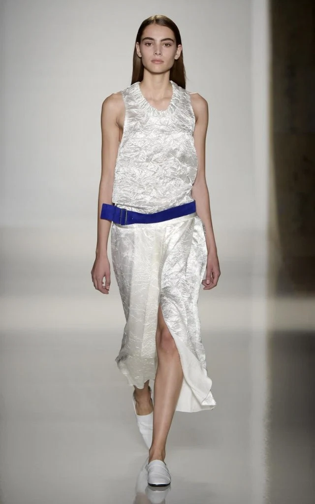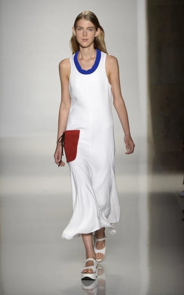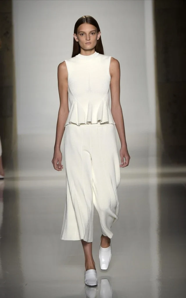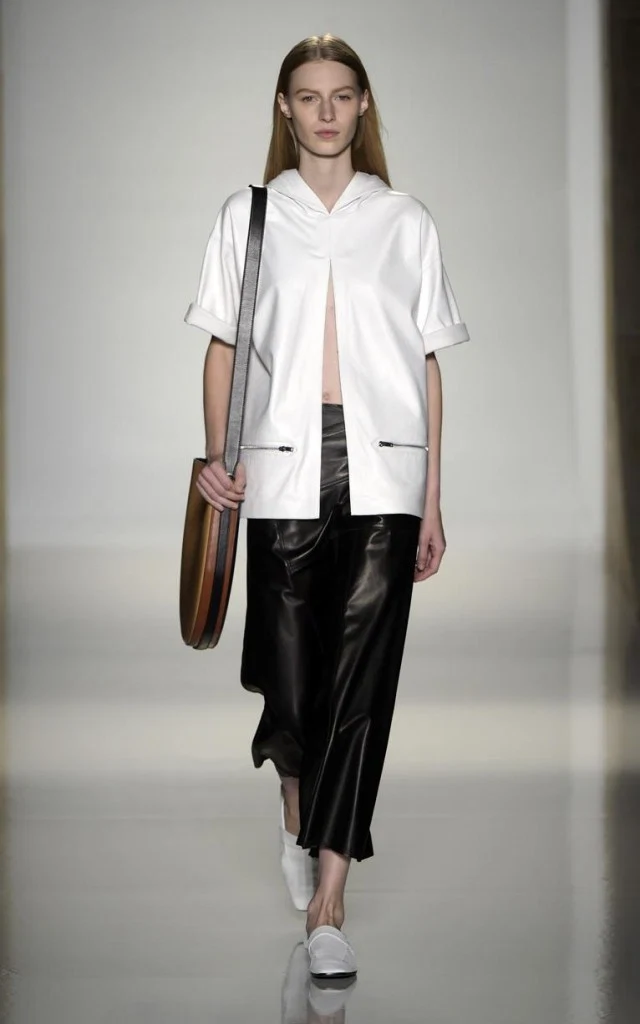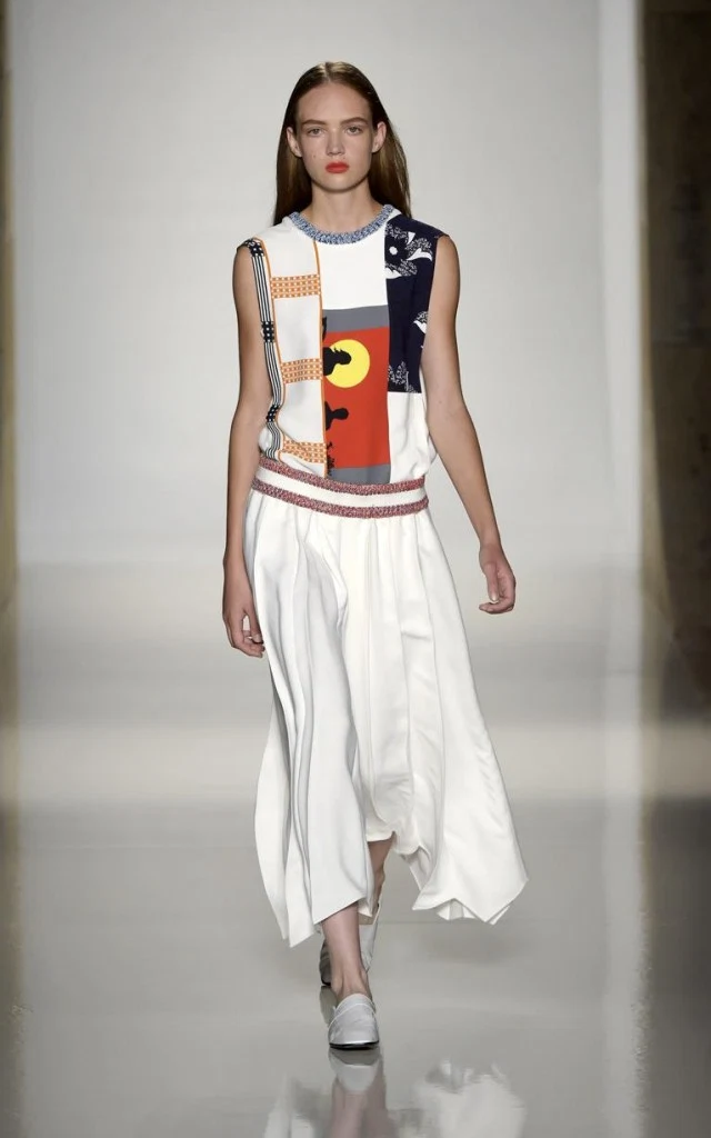 Victoria Beckham is in a “carefree, happy place” at the moment and this is evident in her S/S16 Collection which she debuted at NYFW today. For Spring/Summer, she’s injected a lightness and as she said herself, a ?carefree attitude? in soft, fluid shapes and colours. Softly pleated silk skirts also feature with flowing culottes. With this includes?lightweight, wide-cut leather tunic tops and skirts as well as colour blocked suede mini dresses with sculpted neck details.