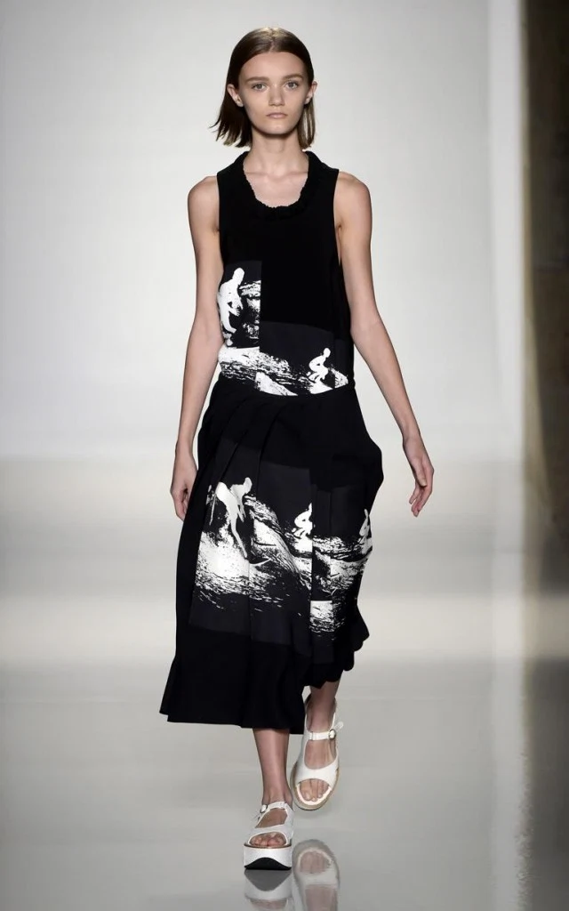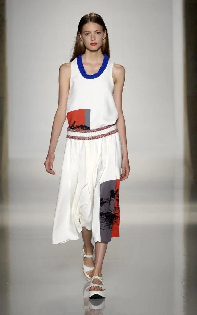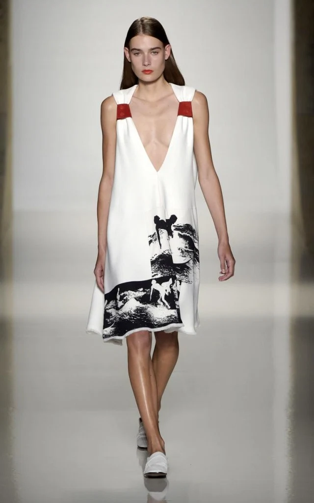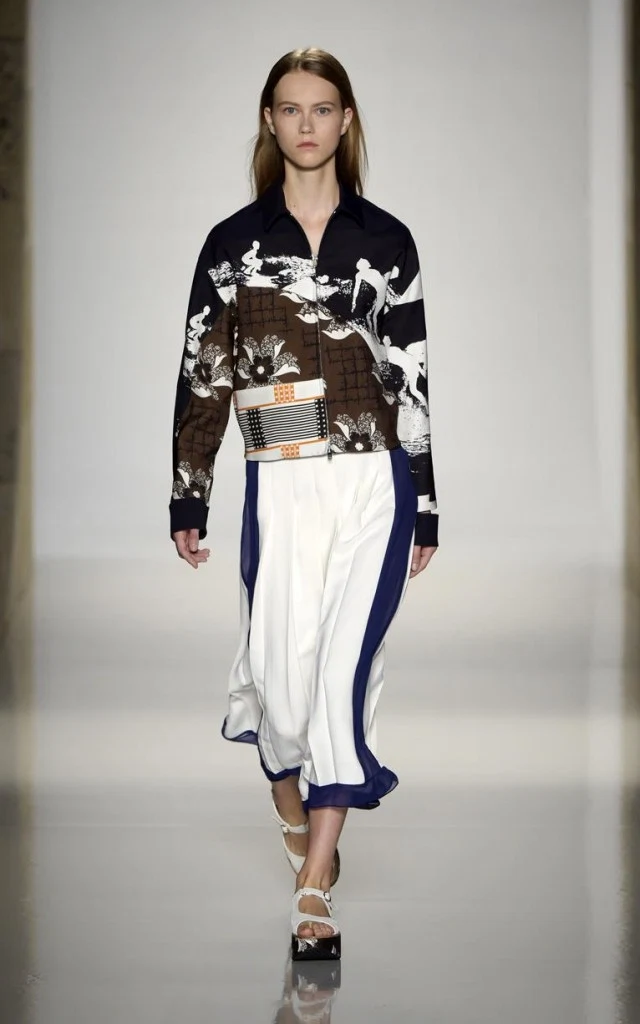 “It’s an urban surf, not a California surf,” Beckham said of the collection. “It’s a very different attitude. It’s more about the city,’ she told the Telegraph.’ A key difference to this collection, is as the designer?acknowledges herself, is the subtle induction of print.??I’ve never really worn a lot of print before as I struggle with it but I try all these clothes on and I think we’ve made it really wearable,? she added.?”It’s a big print season for me,” Beckham said. “I’m really excited to wear this print, this urban surf print . . . I think it’s energetic and uplifting.”