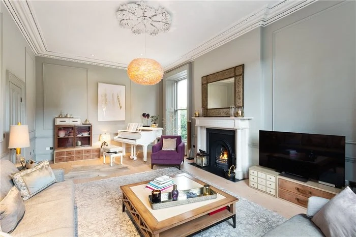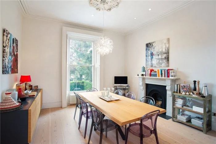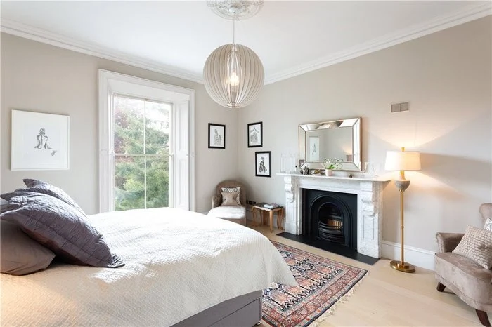 With three storeys, there is also a generosity to the house, meaning there is plenty of space for a family to spread out and enjoy their own activities. On the main level, the drawing room and kitchen/dining room are particularly special rooms with ceilings over 11 feet high, detailed cornicing and marble mantlepieces, while dual aspect windows look out to both the front and rear gardens, and ensure light at all times of the day.
